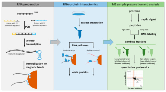 - Butter, F.; Scheibe, M.; Mörl, M.; Mann, M. Unbiased RNA-protein interaction screen by quantitative proteomics. Proc. Natl. Acad. Sci. USA 2009, 106, 10626–10631. [Google Scholar] [CrossRef] [PubMed]