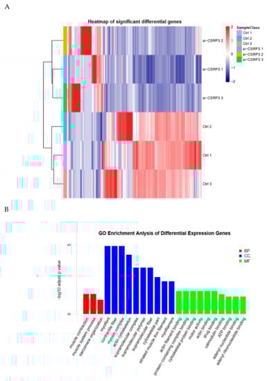 The total RNA was extracted from CSRP3 siRNA and Ctrl siRNA according to the above experimental steps. The cDNA library construction, sequencing, and transcriptome data analysis were performed by Beijing Biomarker Technologies Co., Ltd. (Beijing, China).