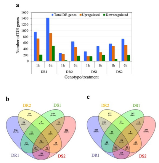 2.3. Differentially Expressed Genes Associated with Drought Resistance