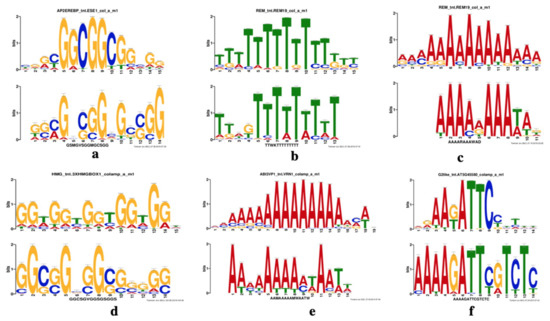- Bailey, T.L.; Boden, M.; Buske, F.A.; Frith, M.; Grant, C.E.; Clementi, L.; Ren, J.; Li, W.W.; Noble, W.S. MEME SUITE: Tools for motif discovery and searching. Nucl. Acids Res. 2009, 37, W202–W208. [Google Scholar] [CrossRef] [PubMed]