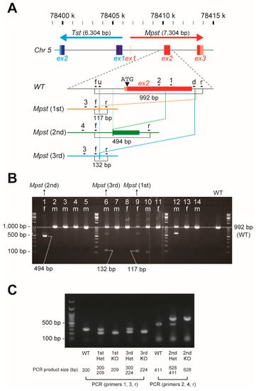 2.1. Establishment of Three Independent Mpst Mutant Lines