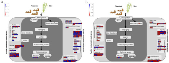 DEG analysis of Nipponbare rice roots infected by M. incognita using MapMan (A) 6dpi; (B) 18dpi.
