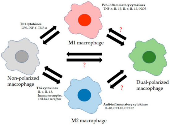 - Mills, C.D.; Kincaid, K.; Alt, J.M.; Heilman, M.J.; Hill, A.M. Pillars Article: M-1/M-2 Macrophages and the Th1/Th2 Paradigm. J. Immunol. 2000. 164: 6166-6173. J. Immunol. 2017, 199, 2194–2201. [Google Scholar] [CrossRef] [PubMed]