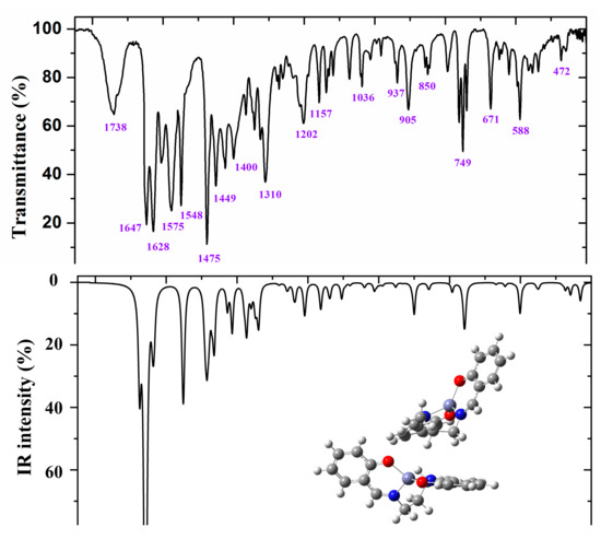 | 1683.8 | 1308 | 100 | 6.5 | 10.8 | 1622 | 1628 vs | 78%, ν(C9=N, C15=N) |