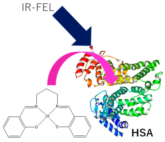 Onami, Y.; Kawasaki, T.; Aizawa, H.; Haraguchi, T.; Akitsu, T.; Tsukiyama, K.; Palafox, M.A. Degradation of Human Serum Albumin by Infrared Free Electron Laser Enhanced by Inclusion of a Salen-Type Schiff Base Zn (II) Complex. Int. J. Mol. Sci. 2020, 21, 874. https://doi.org/10.3390/ijms21030874
