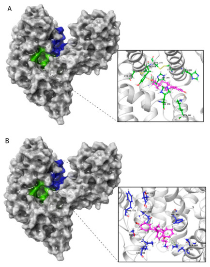 4.2.2. Identification of Protein–Ligand Binding Sites and Grid Generation