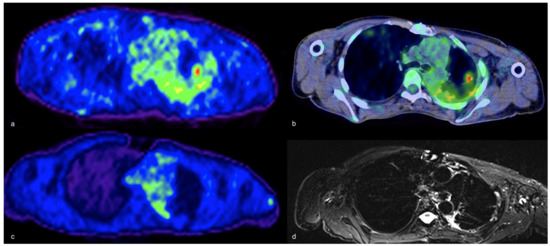 - Heusch, P.; Buchbender, C.; Köhler, J.; Nensa, F.; Gauler, T.; Gomez, B.; Reis, H.; Stamatis, G.; Kühl, H.; Hartung, V.; et al. Thoracic staging in lung cancer: prospective comparison of 18F-FDG PET/MR imaging and 18F-FDG PET/CT. J. Nucl. Med. 2014, 55, 373–378. [Google Scholar] [CrossRef]