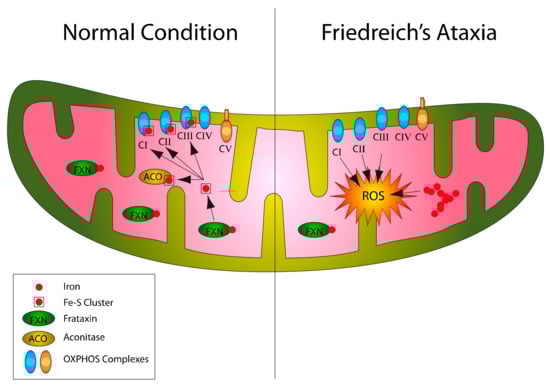 - Llorens, J.V.; Soriano, S.; Calap-Quintana, P.; Gonzalez-Cabo, P.; Molto, M.D. The Role of Iron in Friedreich’s Ataxia: Insights From Studies in Human Tissues and Cellular and Animal Models. Front. Neurosci. 2019, 13, 75. [Google Scholar] [CrossRef] [PubMed]
