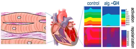 - Kontonika, M.; Barka, E.; Roumpi, M.; Vilaeti, A.D.; Baltogiannis, G.G.; Vlahos, A.P.; Agathopoulos, S.; Kolettis, T.M. Intra-myocardial growth hormone administration ameliorates arrhythmogenesis during ischemia-reperfusion in rats. J. Electrocardiol. 2017, 50, 207–210. [Google Scholar] [CrossRef] [PubMed]
