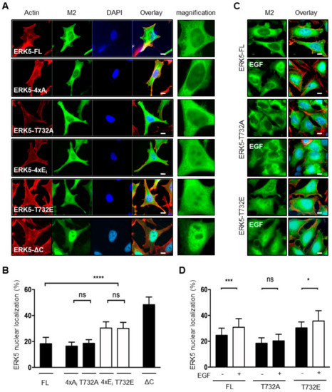2.2. Phosphorylation at Thr732 Promotes ERK5 Nuclear Translocation