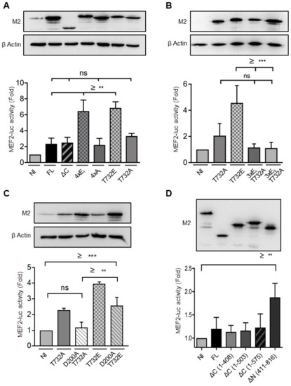2.3. Phosphorylation at Thr732 Enhances ERK5 Transcriptional Activity