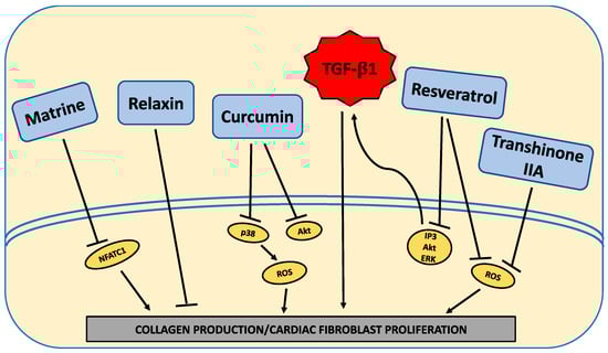 - Liu, J.; Zhuo, X.; Liu, W.; Wan, Z.; Liang, X.; Gao, S.; Yuan, Z.; Wu, Y. Resveratrol inhibits high glucose induced collagen upregulation in cardiac fibroblasts through regulating TGF-beta1-Smad3 signaling pathway. Chem. Biol. Interact. 2015, 227, 45–52. [Google Scholar] [CrossRef]