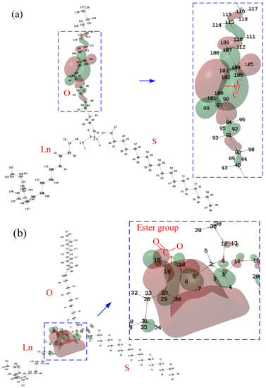 Isosurface of the HOMO and LUMO of N-OSLn: (a) HOMO; (b) LUMO.