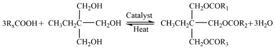 Reaction between the trimethylolpropane and saturated fatty acids [25].