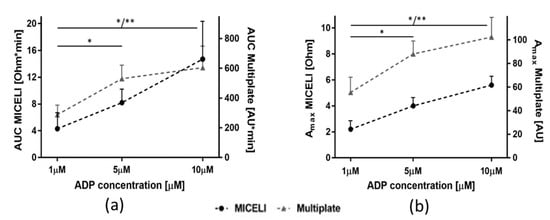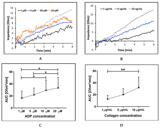 - Müller, M.R.; Salat, A.; Pulaki, S.; Stangl, P.; Ergun, E.; Schreiner, W.; Losert, U.; Wolner, E. Influence of hematocrit and platelet count on impedance and reactivity of whole blood for electrical aggregometry. J. Pharmacol. Toxicol. Methods 1995, 34, 17–22. [Google Scholar] [CrossRef]