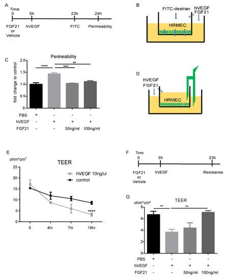 2.3. FGF21 Decreases HRMECs Permeability in Vitro
