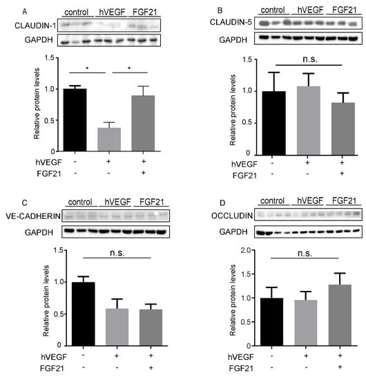 2.5. FGF21 Preserves Expression of Tight Junction (Claudin-1) Protein in HRMECs