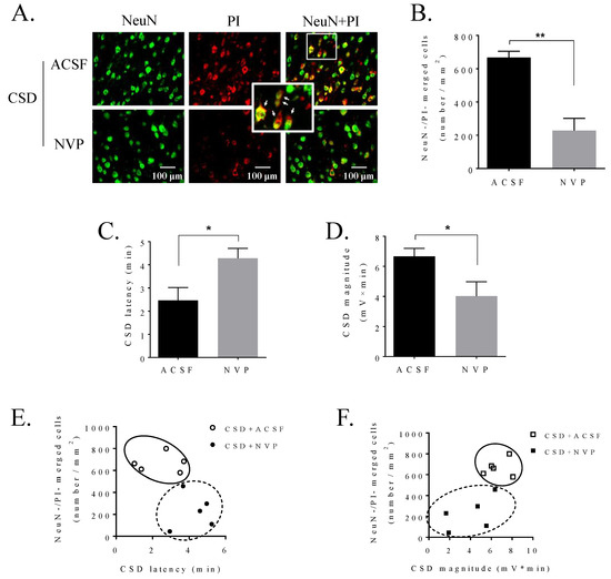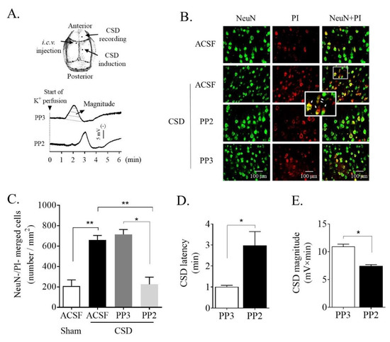 2.1. SFK Inhibition Reduced CSD-Induced Ipsilateral Cortical Neuronal PI Influx