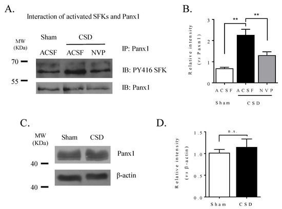 2.3. CSD Promoted Ipsilateral Cortical SFK and Panx1 Interaction
