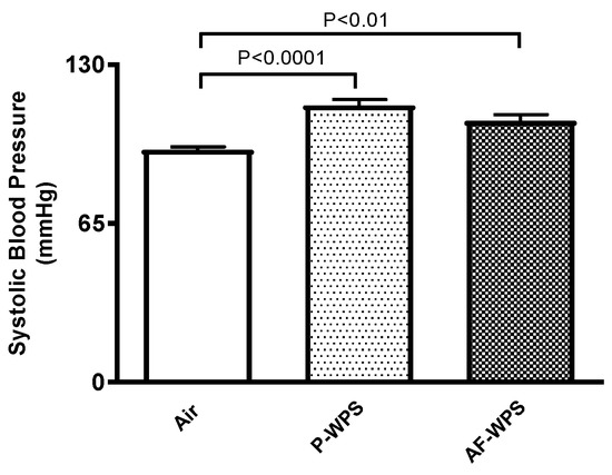 SBP was assessed in the air, P-WPS and AF-WPS groups using a noninvasive computerized tail-cuff system for measuring blood pressure in mice (ADInstrument, Colorado Springs, CO, USA), according to recently described technique [13,18].