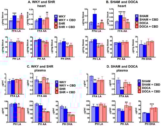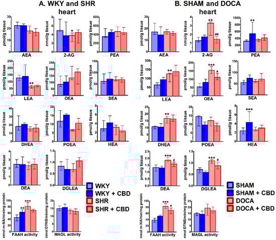 - Biernacki, M.; Malinowska, B.; Timoszuk, M.; Toczek, M.; Jastrząb, A.; Remiszewski, P.; Skrzydlewska, E. Hypertension and chronic inhibition of endocannabinoid degradation modify the endocannabinoid system and redox balance in rat heart and plasma. Prostaglandins Other Lipid Mediat. 2018, 138, 54–63. [Google Scholar] [CrossRef]