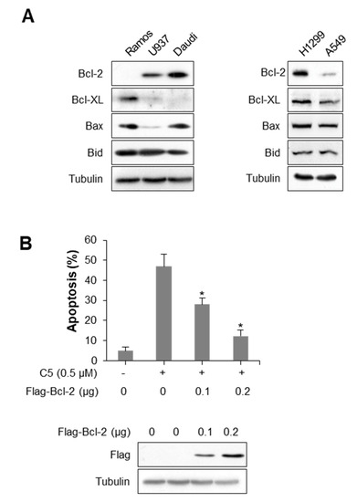 2.3. Bcl-2 Expression Level Affects C5-Induced Apoptosis Sensitivity