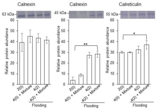- Nouri, M.Z.; Hiraga, S.; Yanagawa, Y.; Sunohara, Y.; Matsumoto, H.; Komatsu, S. Characterization of calnexin in soybean roots and hypocotyls under osmotic stress. Phytochemistry 2012, 74, 20–29. [Google Scholar] [CrossRef]