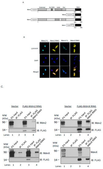 2.2. Mdm2 RING and MdmX RING Domains Interact with the Full-Length Mdm2 and MdmX