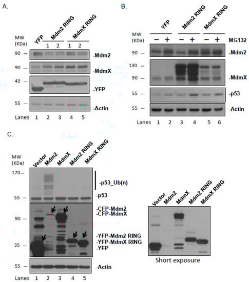 2.3. Ectopically Expressed Mdm2 and MdmX RING Domains Affect the Stability and Function of Endogenous Mdm2 and MdmX