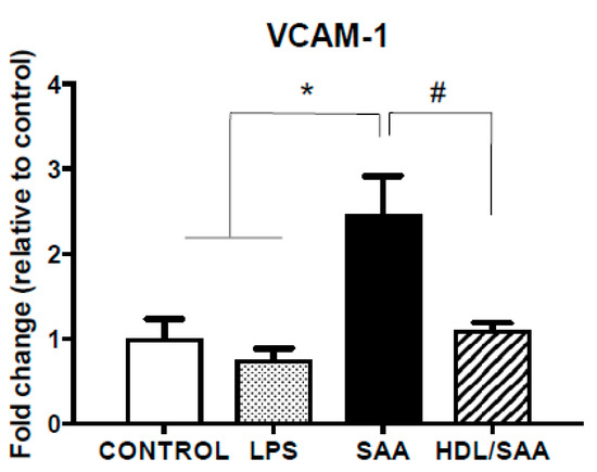 - Ashby, D.; Gamble, J.; Vadas, M.; Fidge, N.; Siggins, S.; Rye, K.; Barter, P.J. Lack of effect of serum amyloid A (SAA) on the ability of high-Density lipoproteins to inhibit endothelial cell adhesion molecule expression. Atherosclerosis 2001, 154, 113–121. [Google Scholar] [CrossRef]