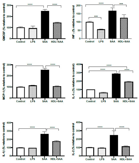 2.4.4. Pretreatment with HDL Inhibits SAA Induced Pro-Inflammatory Cytokine Stimulation