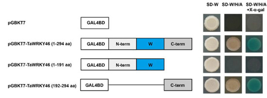 2.3. Transcriptional Activation Assay of TaWRKY46 in Yeast