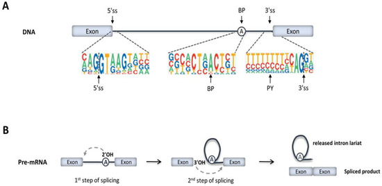 - Wang, Z.; Burge, C.B. Splicing regulation: From a parts list of regulatory elements to an integrated splicing code. RNA 2008, 14, 802–813. [Google Scholar] [CrossRef]