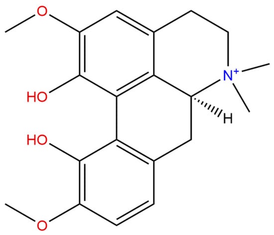 MGN itself can be perceived as the most widely distributed aporphine compound. Certainly, it is an interesting alkaloid characterized by the presence of two hydroxyl- and two methoxyl-substituents attached to an aporphine structure that occurs naturally in various plant species with distant etymology. Structurally, it is a direct derivative of (S)-corytuberine in which the nitrogen atom has been quaternized by another methyl group, and as the result of this process, MGN occurs in the plants in the form of a quarternary ammonium ion with high polarity and good water solubility [,,,]. From the phylogenetic point of view, MGN resembles the structure of aristolochic acid derivatives [].