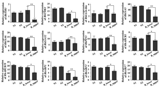 | RchiOBHmChr2g0168761 | 0.59 | −0.77 | down | ATP-binding cassette B19 ABCB19 |