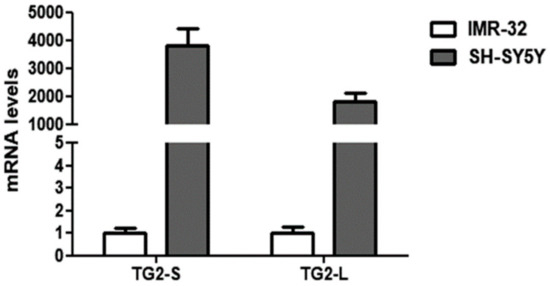 Our preliminary results demonstrated a remarkable down-regulation of both TG2 isoforms in the IMR-32 in comparison to the SH-SY5Y cells in normal O2 conditions (Figure 2).
