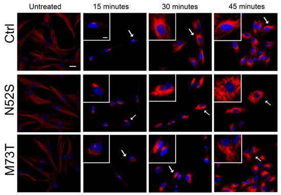 2.2. N52S and M73T Substitutions Affect Microtubule Dynamics In Vitro