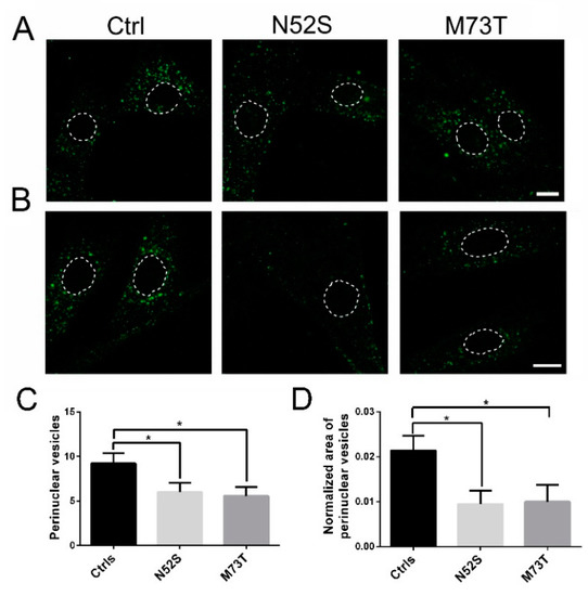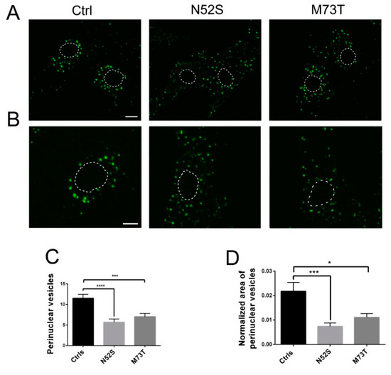 2.3. EGF and Tf Transport Are Impaired in M73T and N52S Mutant Fibroblasts