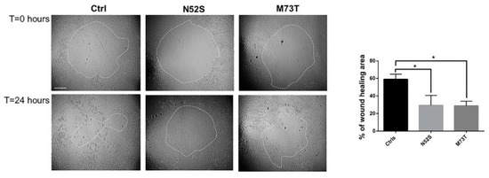 2.4. N52S and M73T Variants Affect Fibroblasts’ Migration