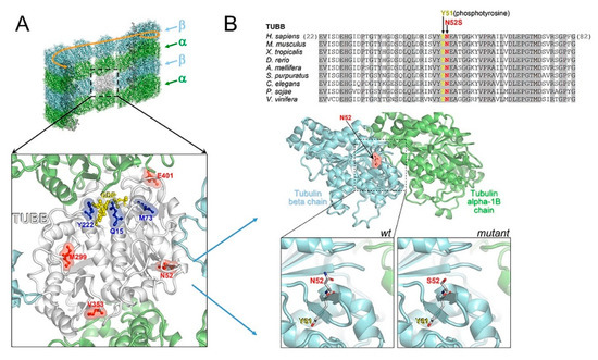 - Breuss, M.; Heng, J.I. Mutations in the β-tubulin gene TUBB5 cause microcephaly with structural brain abnormalities. Cell Rep. 2012, 2, 1554–1562. [Google Scholar] [CrossRef]