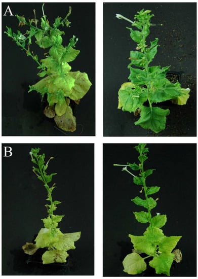 - Ying, X.B.; Dong, L.; Zhu, H.; Duan, C.G.; Du, Q.S.; Lv, D.Q.; Fang, Y.Y.; Garcia, J.A.; Fang, R.X.; Guo, H.S. RNA-Dependent RNA Polymerase 1 from Nicotiana tabacum Suppresses RNA Silencing and Enhances Viral Infection in Nicotiana benthamiana. Plant Cell 2010, 22, 1358–1372. [Google Scholar] [CrossRef]