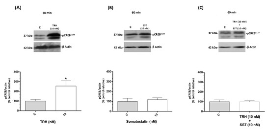 2.8. Effect of TRH and SST on CREB Phosphorylation at Ser133
