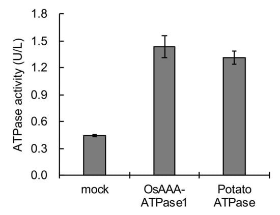 2.5. OsAAA-ATPase1 Has ATPase Activity and Is Localized in the Cytosol