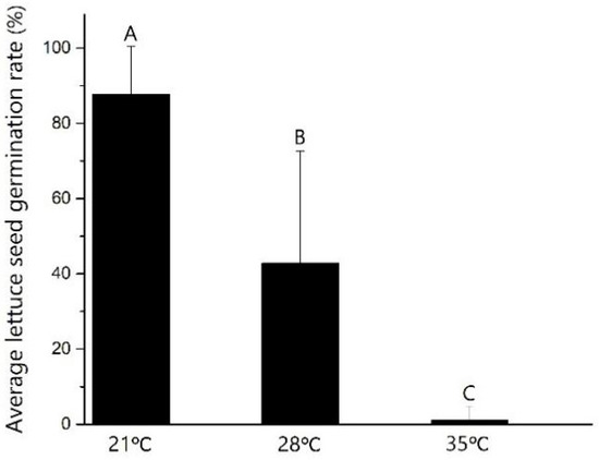 Thermoinhibition refers to the phenomenon in which viable seeds failed to germinate at high temperature and it is recognized as an adaptive regeneration strategy for the cool-season crop to prevent seeds from germination at inappropriate high-temperature particularly in summer that may hamper the growth and development of the young plant [1]. In agricultural production, thermoinhibition limits the time and area for the production of various crops, including vegetables [2]. For example, most of the cultivars of the worldwide consumed vegetable crop, lettuce, exhibit seed thermoinhibition [3]. The optimal temperature for lettuce seed germination ranges from 18 to 21 °C [4]. The lettuce seed germination is greatly hampered by relatively high temperatures (>25 °C), such as in warm-season or in topical zones, when or where the temperature is always higher than the upper-temperature limitation of lettuce germination [2,3,5,6]. Therefore, understanding the mechanism of lettuce seed germination and thermoinhibition will greatly increase lettuce breeding efficiency in producing thermal tolerance cultivars to ensure good germination during warm season planting.