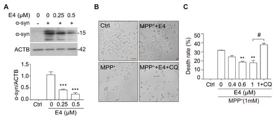 2.4. Compound E4 Reduces α-syn Levels and Protects Against MPP+ Toxicity in Vitro