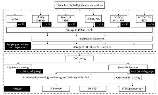 - Irani, M.; Lovric, V.; Walsh, W.R.J.C.; Banking, T. Effects of supercritical fluid CO2 and 25 kGy gamma irirradiation on the initial mechanical properties and histological appearance of tendon allograft. Cell Tissue Bank. 2018. [Google Scholar] [CrossRef]