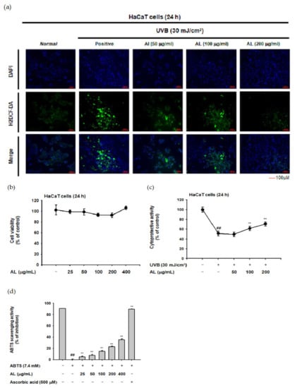 2.1. In Vitro Antioxidant Effects of AL in Skin Cells