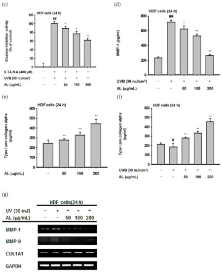 2.3. Antiwrinkle Effects of AL in Human Dermal Fibroblast Cells