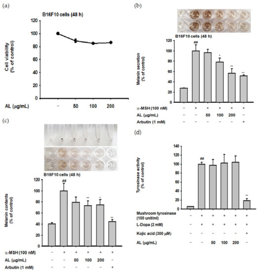 2.4. Antimelanogenesis Effects of AL in B16F10 Cells