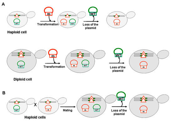 [PSI+] and [psi−] diploids containing two plasmids: one with SUP35 and another with sup35-n mutation, were obtained either by transformation of diploid strains (see Figure 2A) or by mating of corresponding haploid strains (see Figure 2B). In both cases, to lose SUP35 plasmid and to keep only the plasmid with mutant sup35-n, the plasmid shuffle on the 5-FOA medium was used.